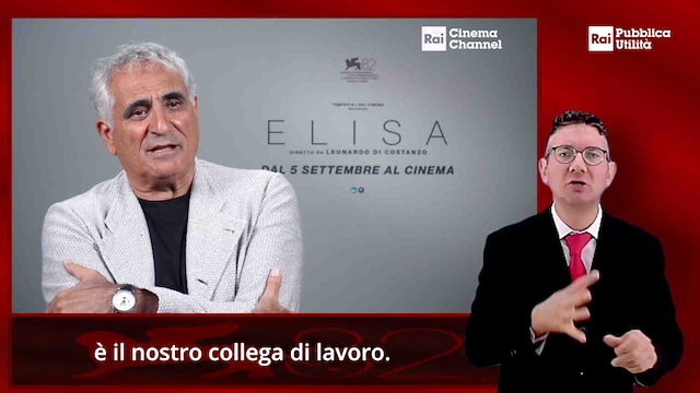 Continua la collaborazione tra Rai Cinema e Rai Pubblica Utilità con alcune clip accessibili dall'82ª Mostra Internazionale d'Arte Cinematografica di Venezia. In questa clip la versione con LIS e sottotitoli delle interviste del film "Elisa" diretto da Leonardo Di Costanzo. Il film è una produzione Tempesta / Carlo Cresto-Dina con Rai Cinema in coproduzione con Amka Films Productions. CONCORSO - Selezione Ufficiale